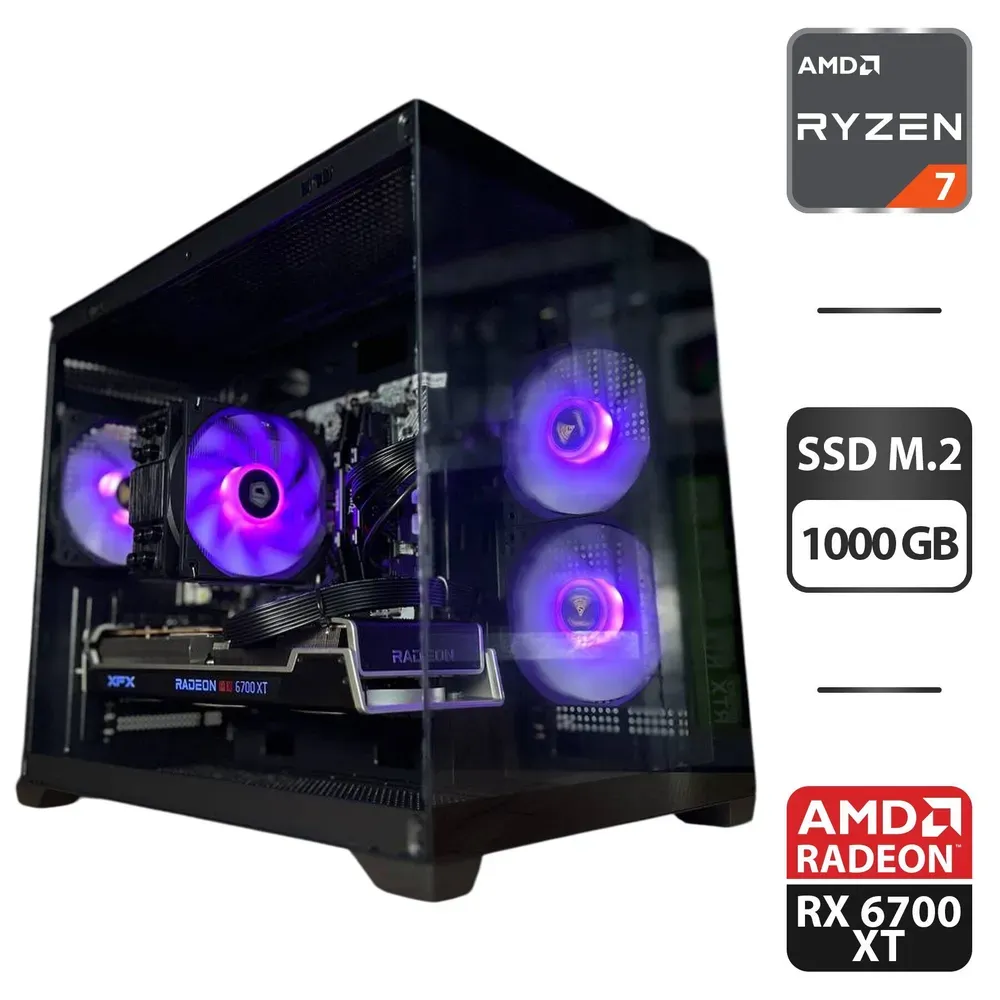 Збірка під замовлення: ігровий ПК Gamdias Aura GC10M ARGB Black Tower / AMD Ryzen 7 5700X (8 (16) ядер по 3.4 - 4.6 GHz) / 32 GB DDR4 / 1000 GB SSD M.2 / AMD Radeon RX 6700 XT, 12 GB GDDR6, 192-bit / 650W б/в