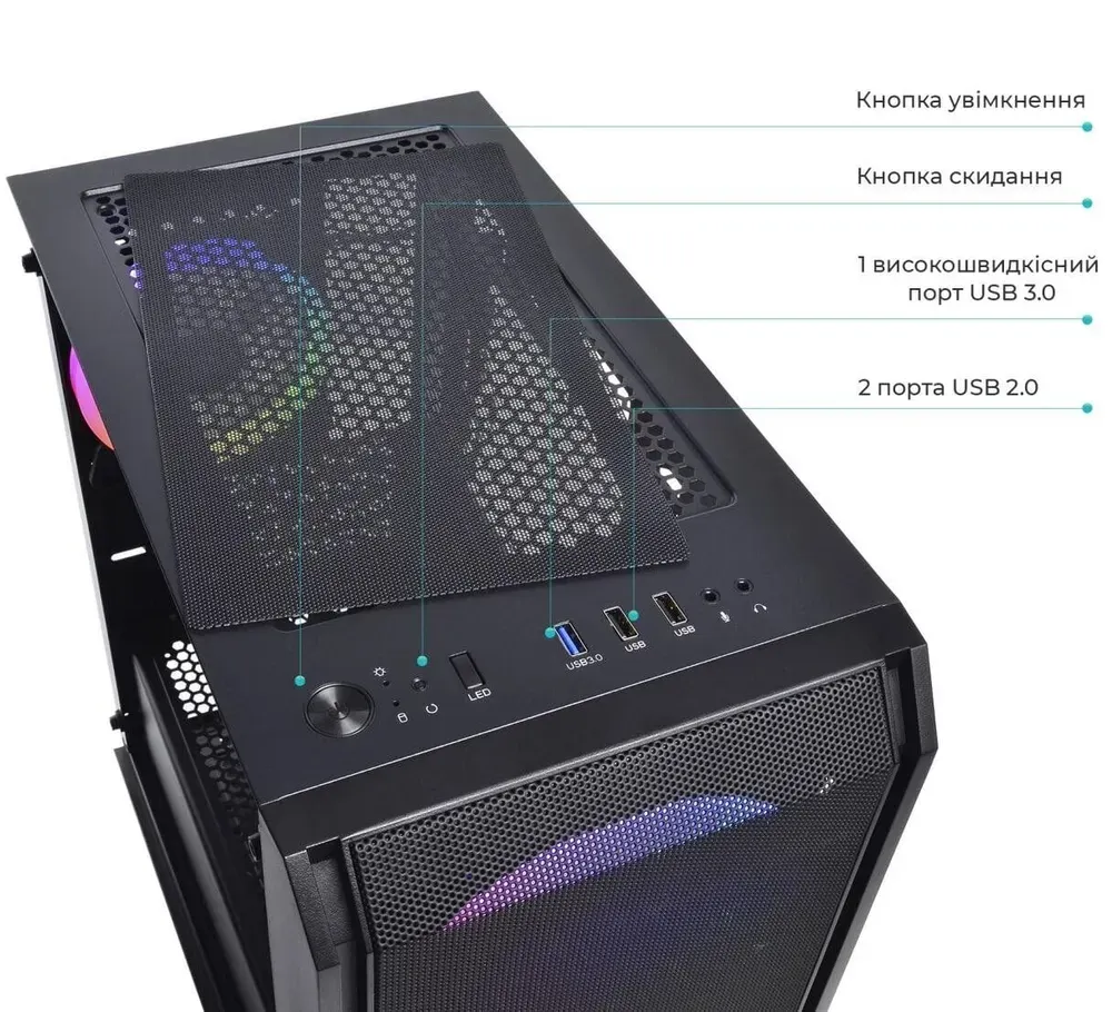 Збірка під замовлення: ігровий ПК Qube Neptune Tower на базі процесора AMD Ryzen 5 5500 і дискретною відеокартою nVidia GeForce RTX 2060 6 GB для ігор і роботи з мультимедіа