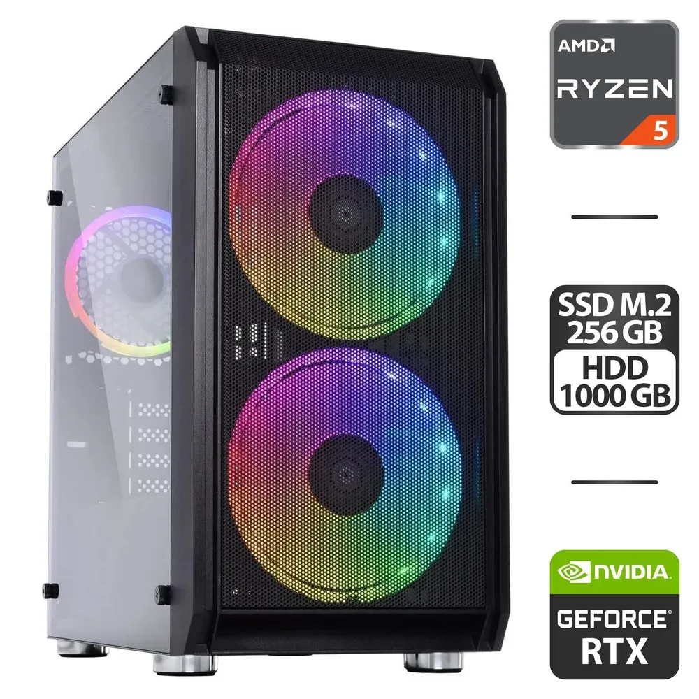 Збірка під замовлення: ігровий ПК Qube Neptune Tower / AMD Ryzen 5 5500 (6 (12) ядер по 3.6 - 4.2 GHz) / 16 GB DDR4 / 256 GB SSD M.2 + 1000 GB HDD / nVidia GeForce RTX 2060, 6 GB GDDR6, 192-bit / HDMI / 550W