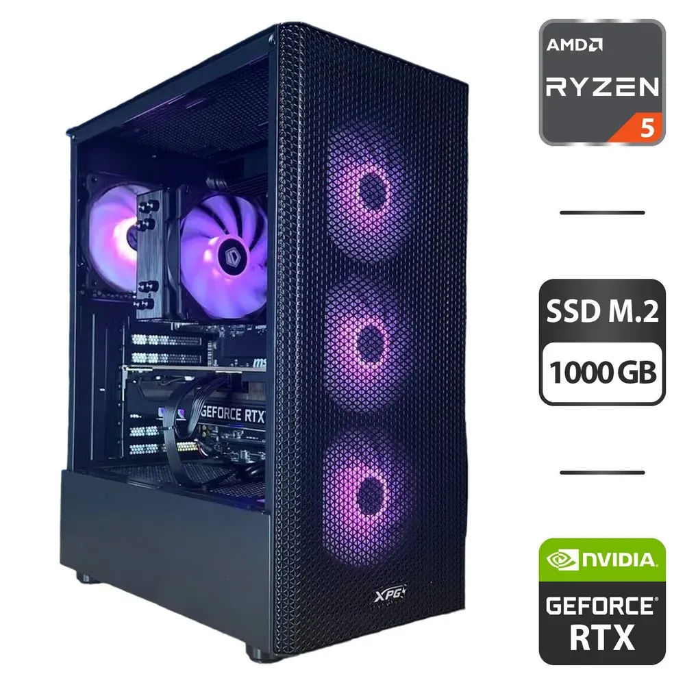 Збірка під замовлення: комп'ютер A-Data XPG Valor Mesh C Black Tower / AMD Ryzen 5 7500F (6 (12) ядер по 3.7 - 5.0 GHz) / 32 GB DDR5 / 1000 GB SSD M.2 / nVidia GeForce RTX 3080, 10 GB GDDR6X, 360-bit / 850W б/в