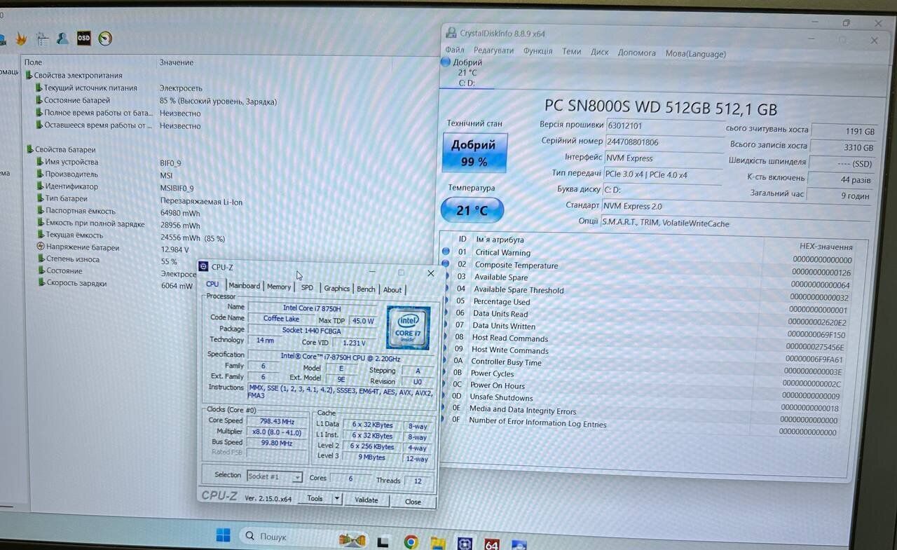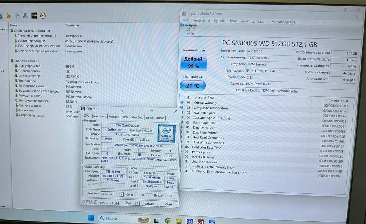 - Модель: MSI MegaBook GS63 Stealth 8RE