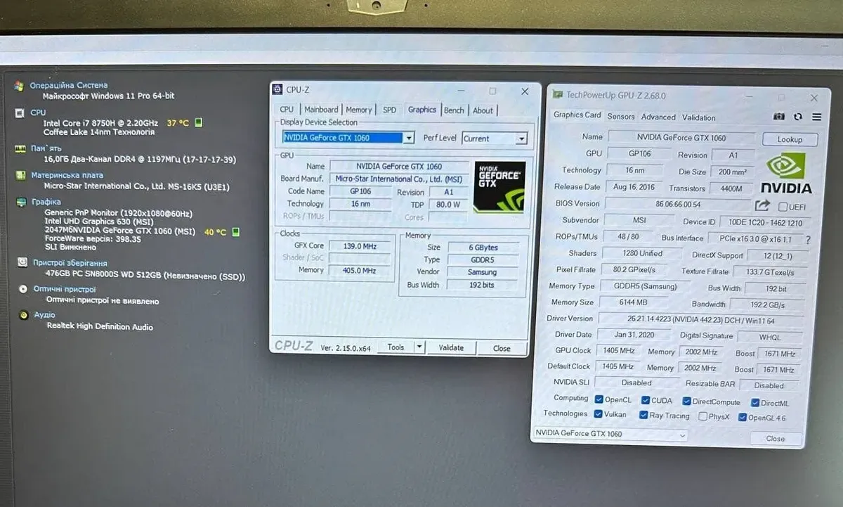 Дискретна відеокарта:GeForce GTX 1060