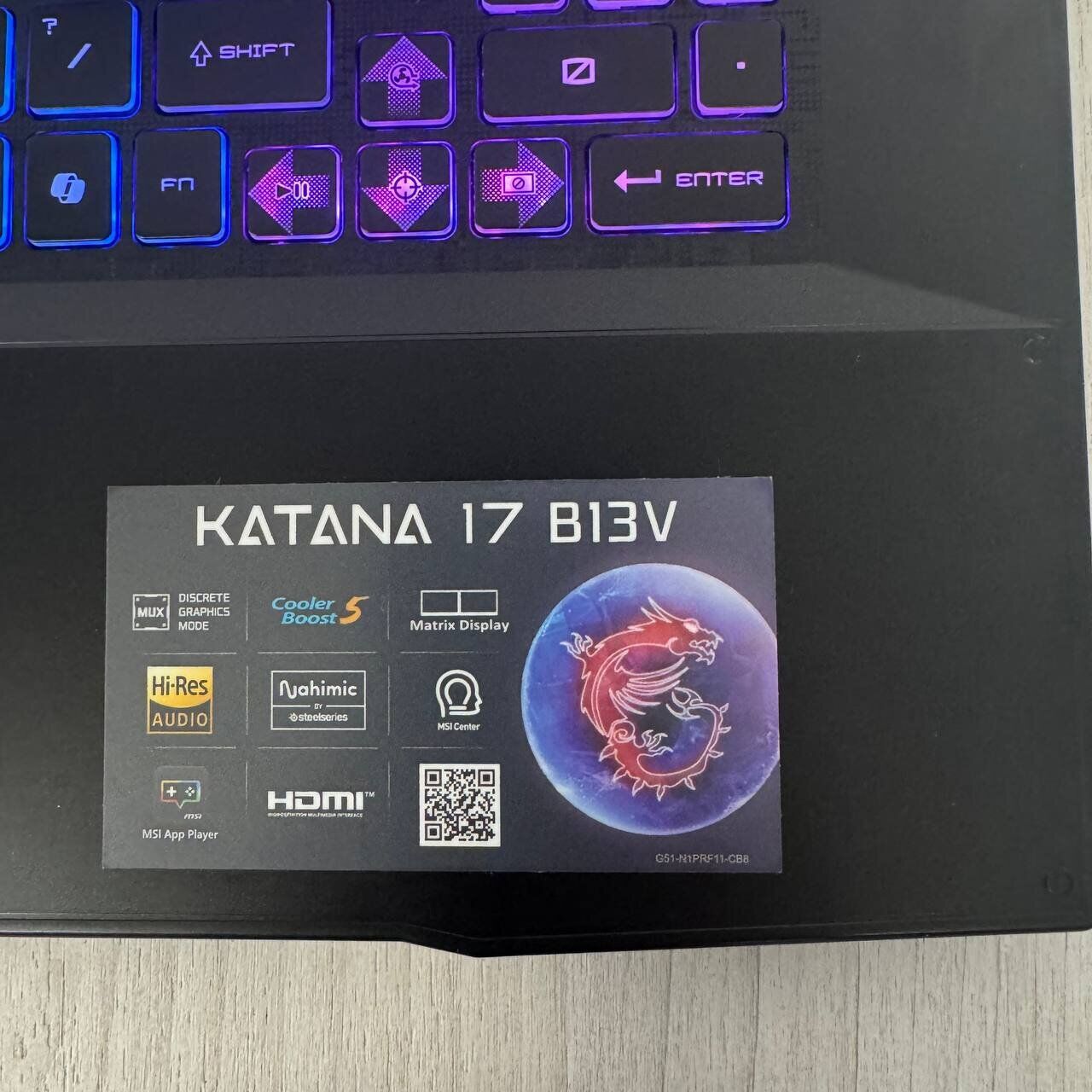 Ігровий ноутбук MSI Katana 17 B13VGK / 17,3" (1920x1080) IPS / Intel Core i7-13620H (10 (16) ядер по 3,6 - 4,9 ГГц) / 16 ГБ DDR5 / 1000 ГБ SSD M.2 / nVidia GeForce RTX 4070, 8 ГБ GDDR6, 128-біт / Веб-камера б/в