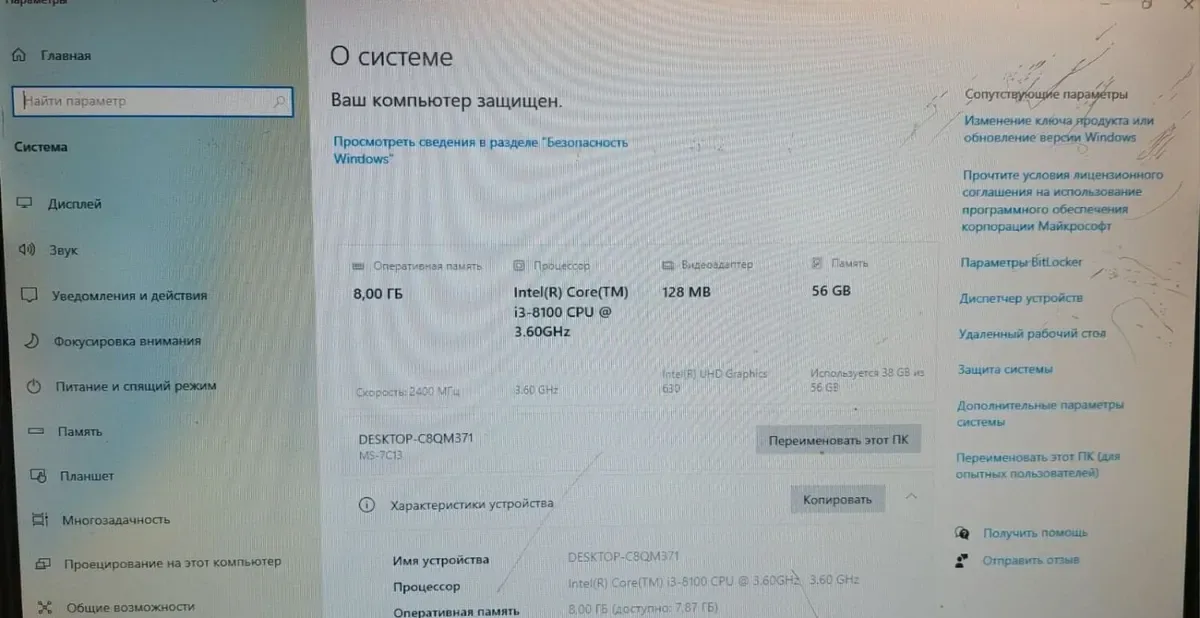 Комплект: Материнська плата MSI H310M Pro-VD Plus / s1151 / Intel Core i3-8100 (4 ядра по 3,6 ГГц) / 8 ГБ DDR4 + Кулер б/в