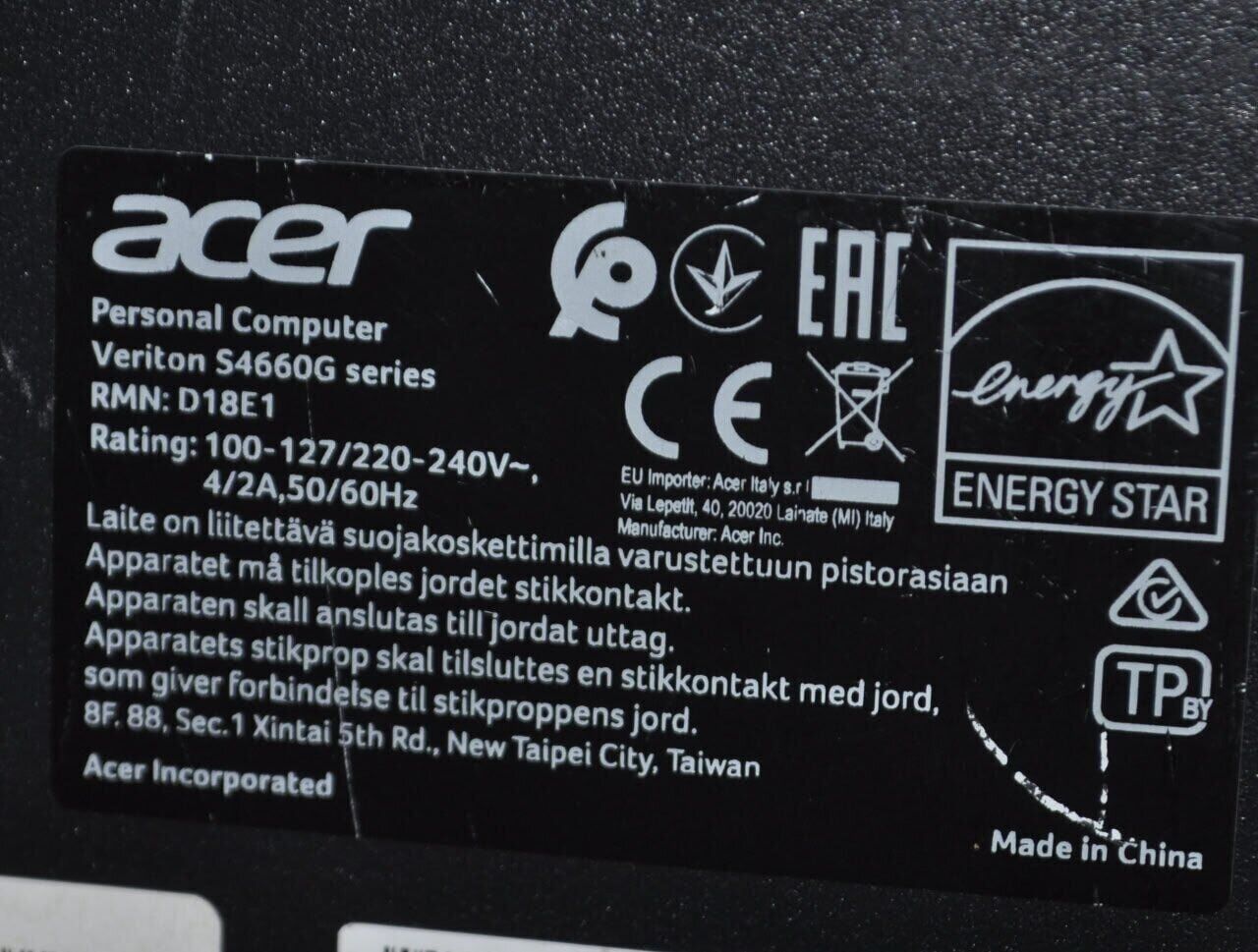 Комп'ютер Acer Veriton S4660G Tower / Intel Core i5-8400 (6 ядер по 2,8 - 4,0 ГГц) / 16 ГБ DDR4 / 256 ГБ SSD M.2 / Intel UHD Graphics 630 / Windows 11 Pro б/в