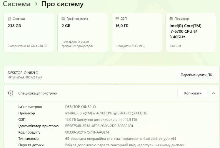 - Операційна система: Windows 11 Pro