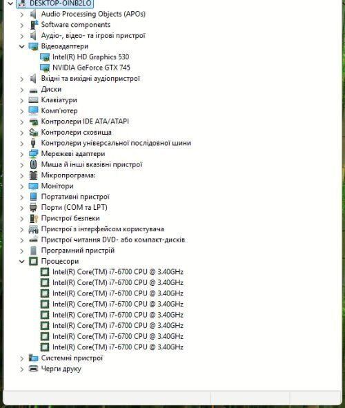 - Процесор: Intel Core i7-6700 (4 (8) ядра з тактовою частотою 3,4–4,0 ГГц), 8 МБ Smart Cache