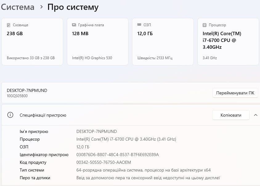- Операційна система: Windows 11 Pro