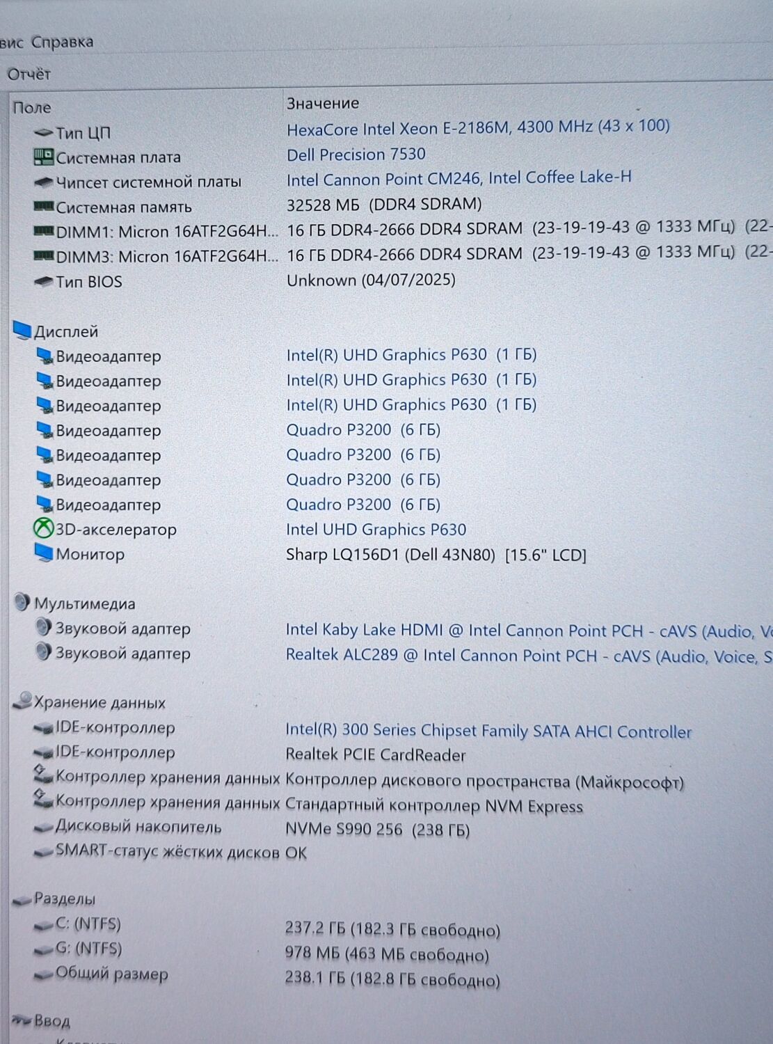 - Графіка: дискретна nVidia Quadro P3200, 6 ГБ GDDR5, 192-біт