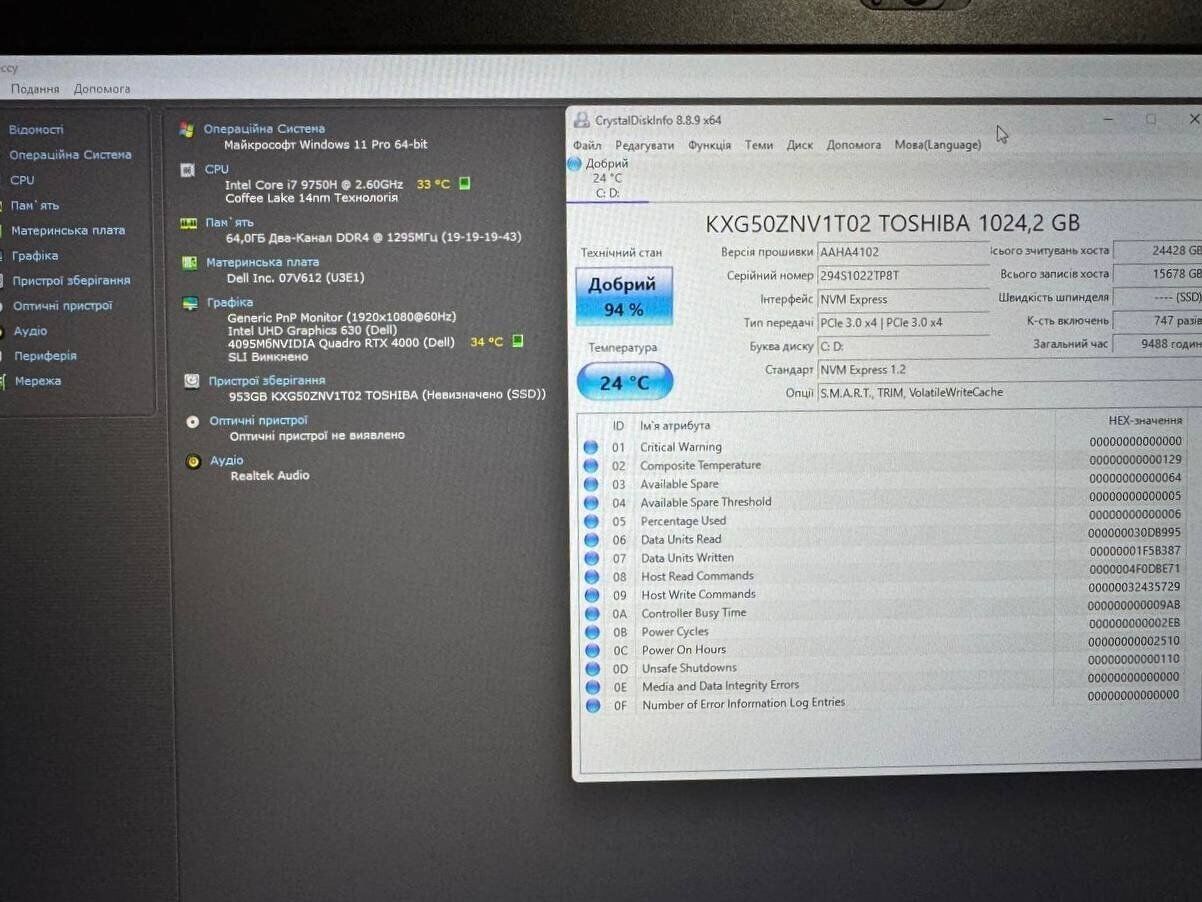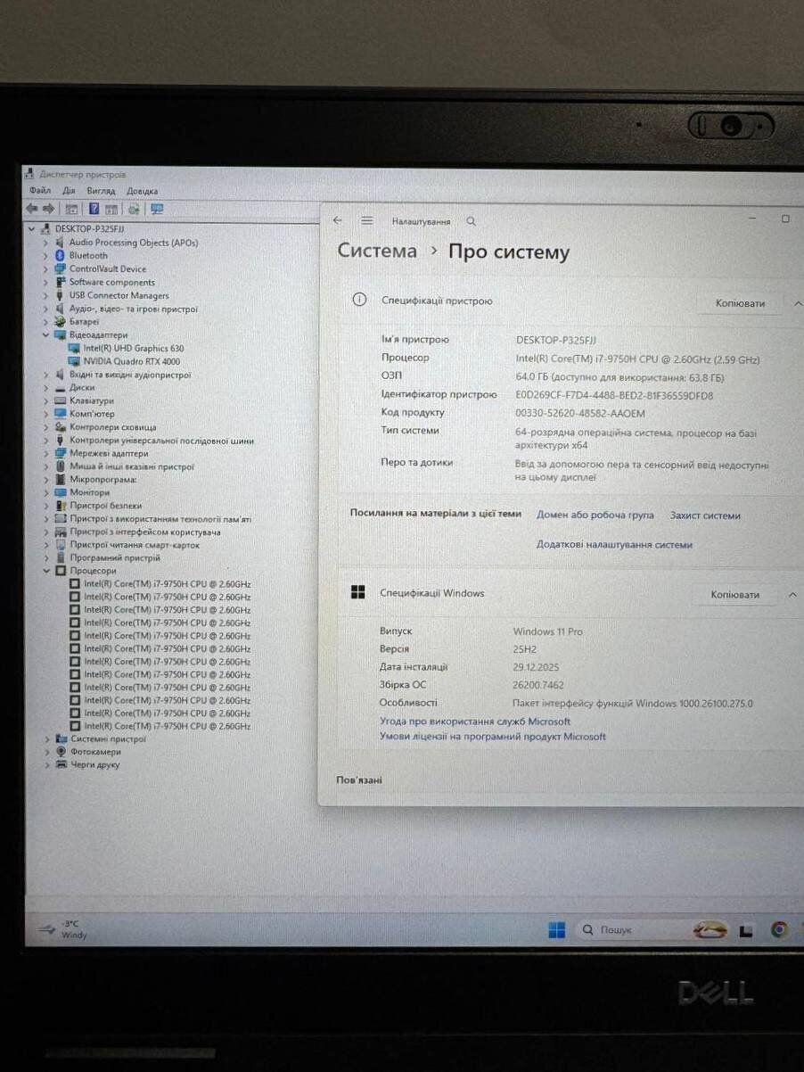 - Графіка: дискретна nVidia Quadro RTX 4000, 8 ГБ GDDR6, 256-біт