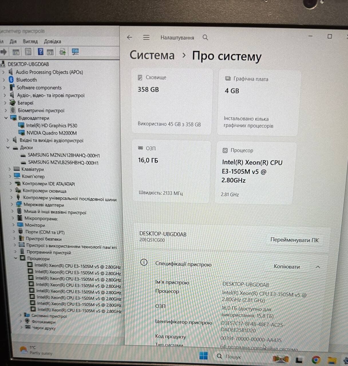 - Графіка: дискретна nVidia Quadro M2000M, 4 GB GDDR5, 128-bit