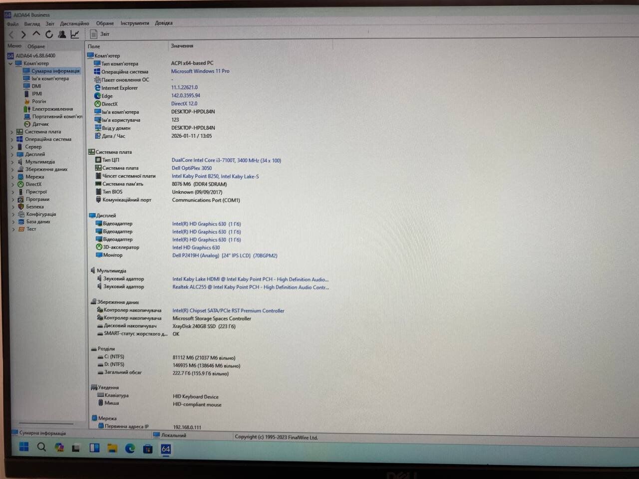 - Модель: Dell OptiPlex 3050 Micro USFF