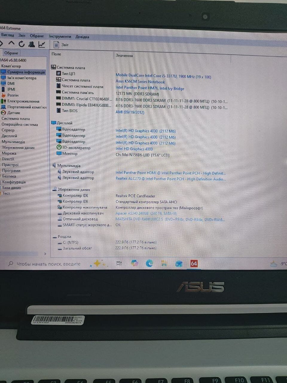 - Модель: Asus K56CM