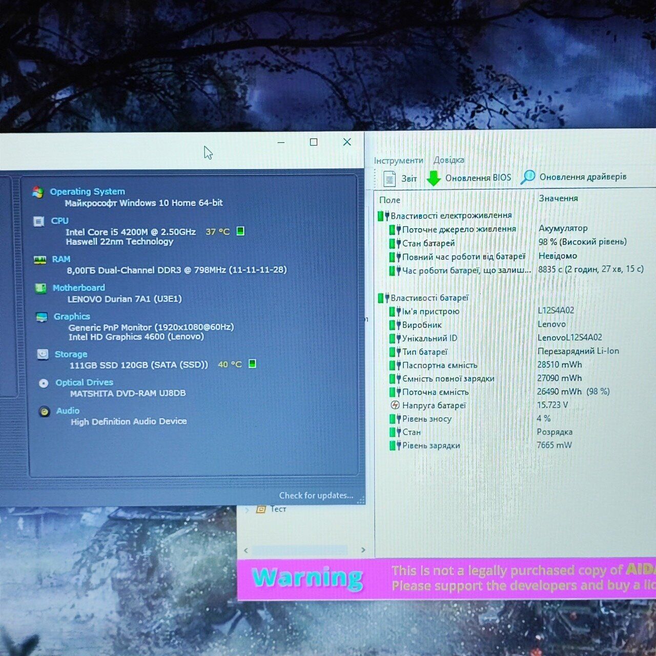 - Процесор: Intel Core i5-4200U (2 (4) ядра по 1.6 - 2.6 GHz), 3 MB Smart Cache