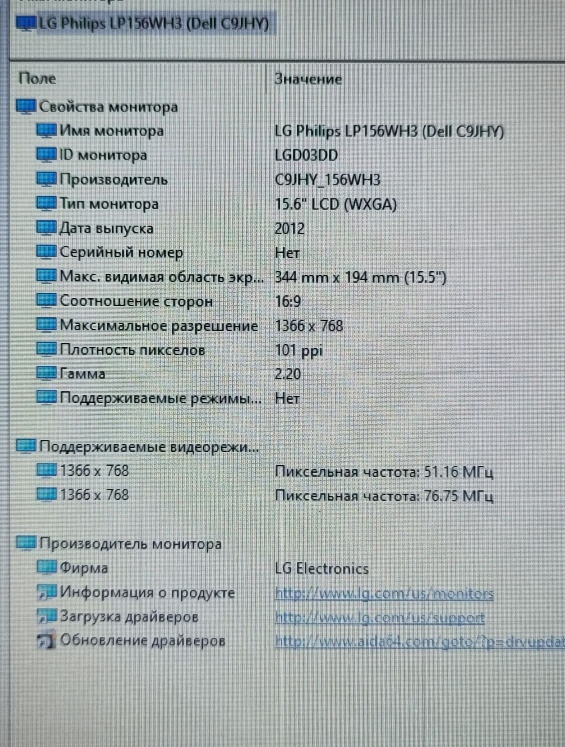 - Екран (діагональ, роздільна здатність, тип матриці): 15,6" (1366x768) TN