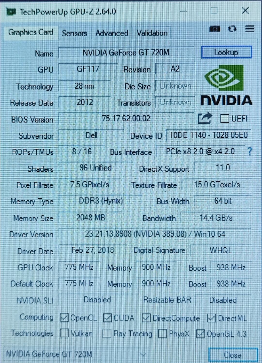 - Графіка: дискретна nVidia GeForce GT 720M, 2 GB GDDR3, 64-bit