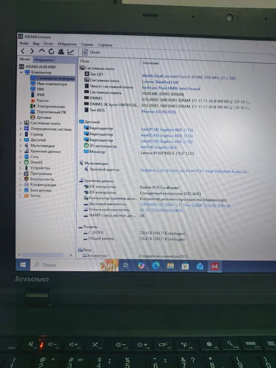 - Модель: Lenovo ThinkPad L540