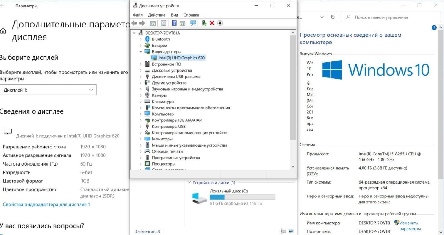- Графіка: інтегрована Intel UHD Graphics 620 (до 1792 МБ з ОЗУ)