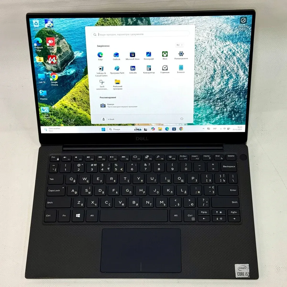 - Комплектація: ноутбук, зарядний пристрій, наклейки на клавіатуру